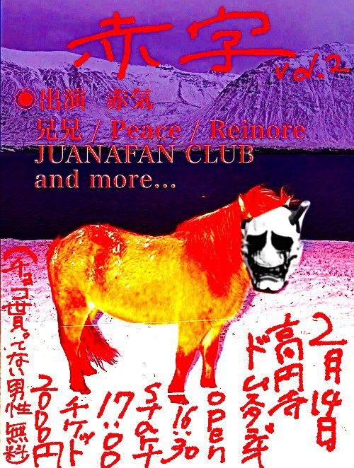 赤気自主企画「赤字」vol.2 SCHEDULE 2026/02/14(土) 高円寺ドムスタジオ OPEN 16:30 START 17:00 2000円(チョコを貰えてない男無料) ※出演者はフライヤー参照 取り置き URLをコピーする 報告する